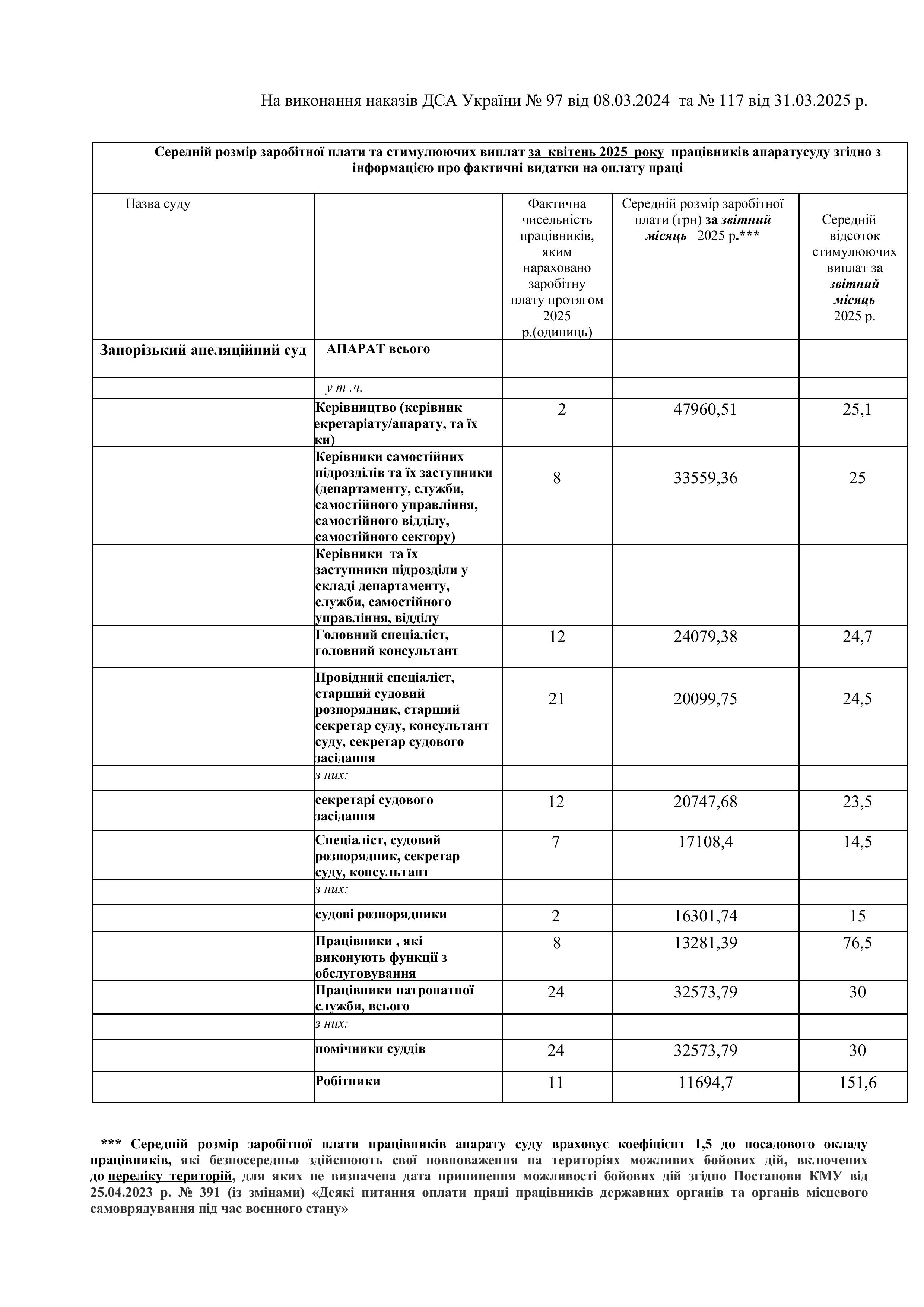 Інформація про середній розмір заробітної плати та стимулюючих виплат працівників апарату суду