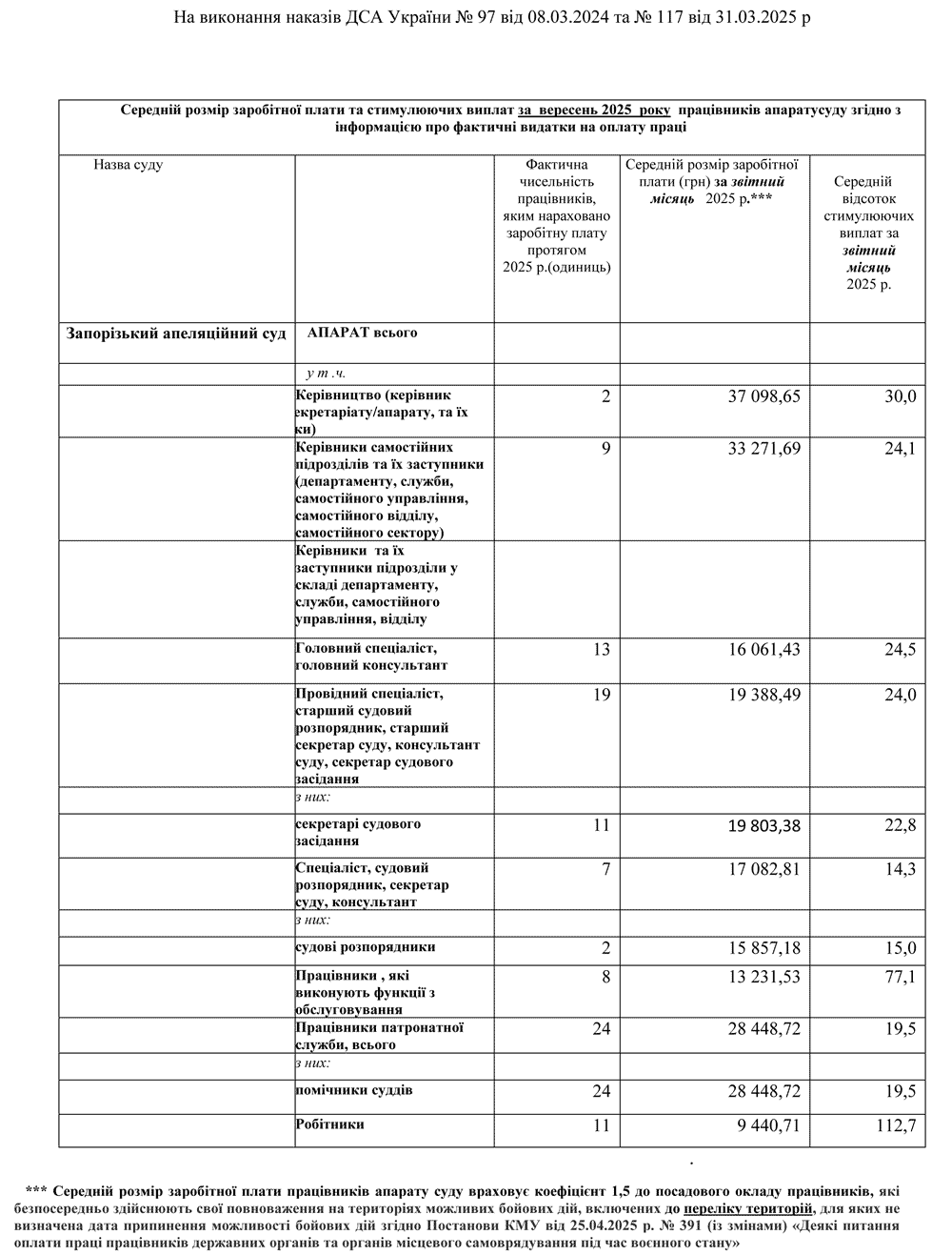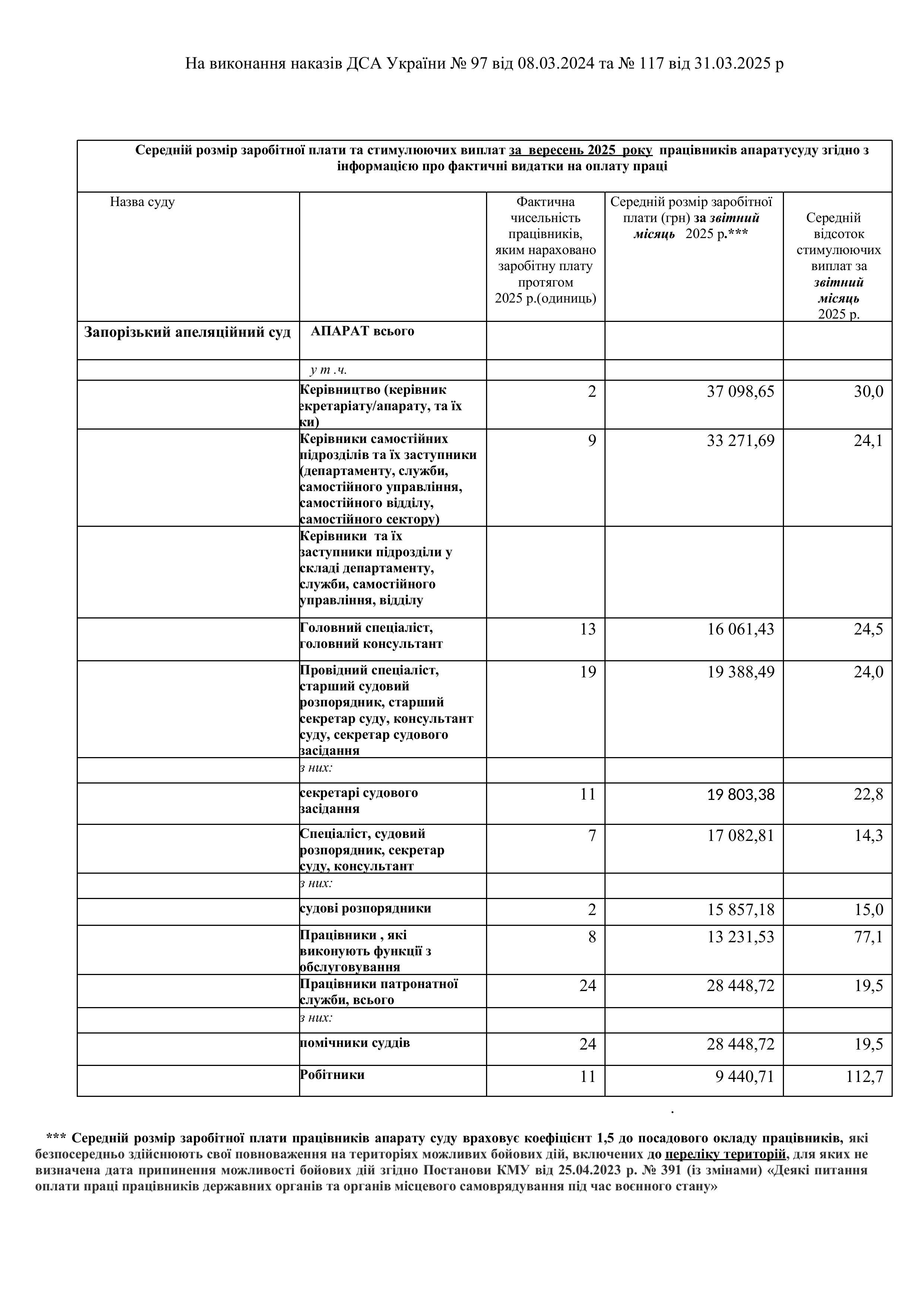 Інформація про середній розмір заробітної плати та стимулюючих виплат працівників апарату суду