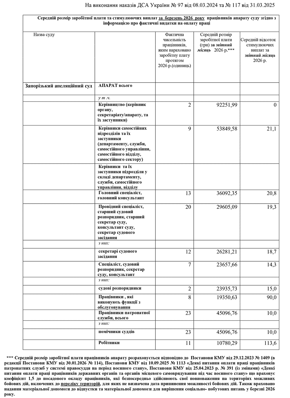 Інформація про середній розмір заробітної плати та стимулюючих виплат працівників апарату суду